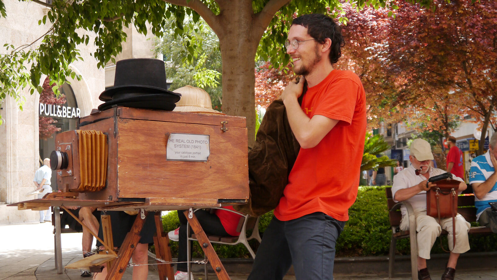 So habe ich in diesem Frühsommer einen „Fotografen“ beobachtet, der mit seiner altertümlich wirkenden Kamera ein Foto von einer Freiwilligen gemacht hat. Der ganze Prozess hat bestimmt 20 Minuten gedauert, dann endlich war das Bild fertig.